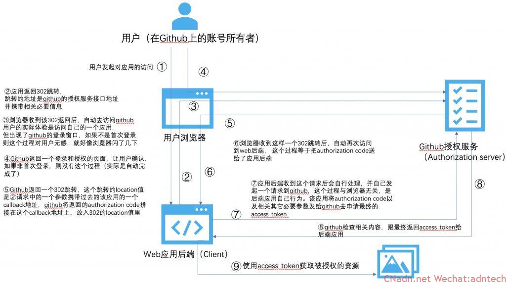 -如果不仅仅是限于获取用户信息,而是要去获取额外资源,比如还需要去获取这人的repo内容,那么应用服务器就需要拿着这个access_token去访问一个github的repo资源服务器(资源服务器和授权服务器不一定是同一个,大型的场景也往往一般不是同一个)来获取此人的repo内容,那么上图就变成了这样: