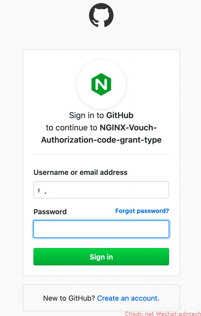vouch.cnadn.net收到后进行处理,并让浏览器跳转github.com/authorize接口,因为也没有在github登录过,所以github又跳转到/login接口让用户登录